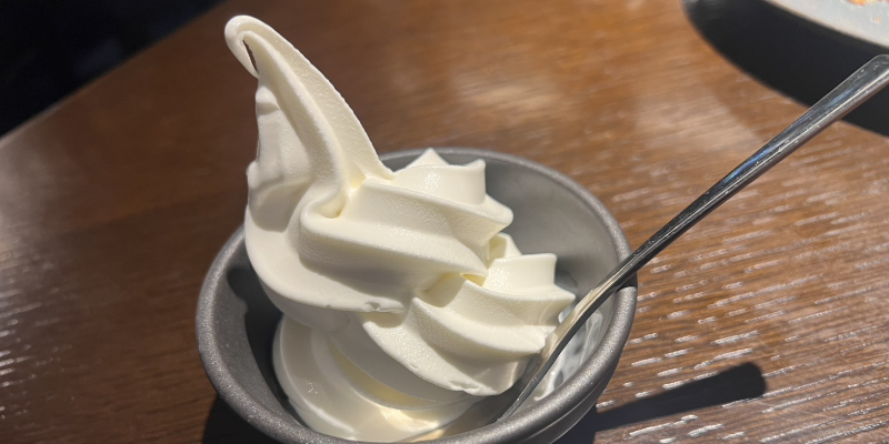 わたくしはデザートにこのレストランの一押しのソフトクリームを食べるわ。